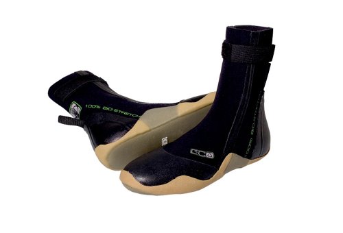 Hate surfing with cold feet? So do we! Pick up a pair of these 5mm booties and stay nice and toasty in the lineup. Features 100% Eco-Flex throughout, the purest form of non toxic stretch material on the planet Environmentally friendly non-petroleum Bio-Stretch rubber Bamboo/recycled polyester interior Vaporlock seams Anatomically cut Non toxic water based inks Natural rubber sole Velcro ankle strap